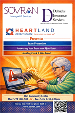 Join Sovran Managed IT Services, Heartland Credit Union, and Dehncke Insurance for a short seminar on avoiding both Internet Scams and Check/Wire Fraud, and get all of your Insurance questions answered.